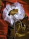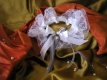 Используемые материалы: лента атласная, лента из органзы, кружево двухслойное, стразы, жемчужная бусина.