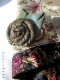 Текстильная брошка в зеленоватых тонах, с вкраплением красного. Украсит строгую или повседневную одежду, и добавит изюминку в праздничную.