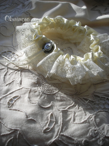 Используемые материалы: атласные ленты, кружево, перламутр, стразы, микробисер.