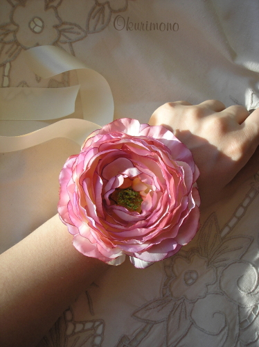 Украшение для подруг невесты, в виде цветка. Поменяв длину ленты, его можно использовать и как украшение для головы, шеи или талии. Размер цветка: 10 x 10 см. Используемые материалы: хлопок, атласные ленты, бусины, декоративные тычинки.