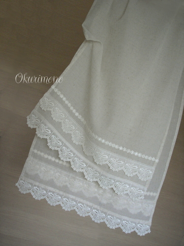 Используемые материалы: смесовая ткань со льном, кружево, декоративная тесьма.