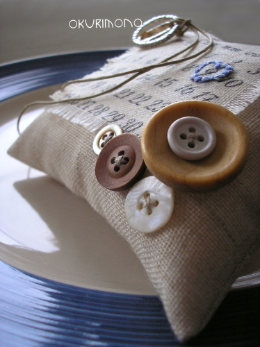 Подушечка-календарик с пуговицами и вашей важной датой. Дата свадьбы выделяется вышивкой или иным способом.