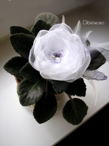 Используемые материалы: органза, фатин, сетка, бисер, перья, жемчуг натуральный речной, стеклянные бусины.