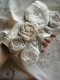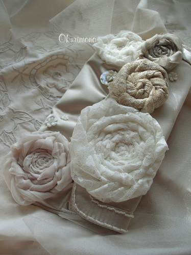 Используемые материалы: кружево, шёлк, атлас, органза, бисер, жемчуг, перламутр.