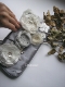 Используемые материалы: кружево, шёлк, крепдешин, атлас, бархатная лента, бисер, жемчуг, перламутр, атлас.