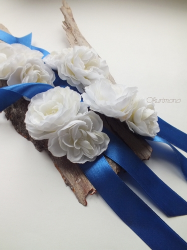 Браслеты Беатрикс 1.2 и 1.3 сделаны для подружек невесты. Поменяв длину ленты, их можно использовать и как украшение для головы, шеи или талии. Используемые материалы: текстильные цветы, жемчуг натуральный(речной), бисер, бусины стеклянные, атласная лента.