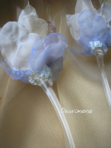 Изящные свадебные бокалы с воздушным декором из лепестков ручной работы.