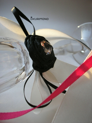 Используемые материалы: атласные ленты, кристаллы(сердца).