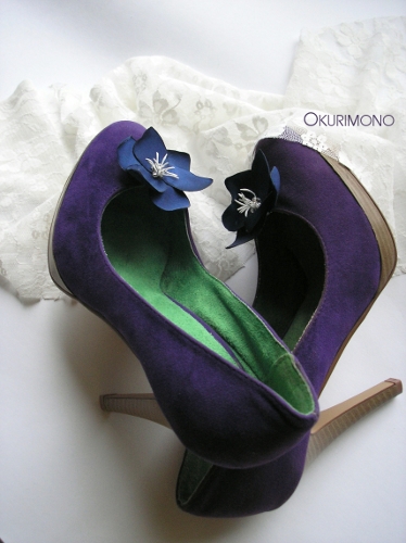 Украшение для обуви, в виде синих цветов.