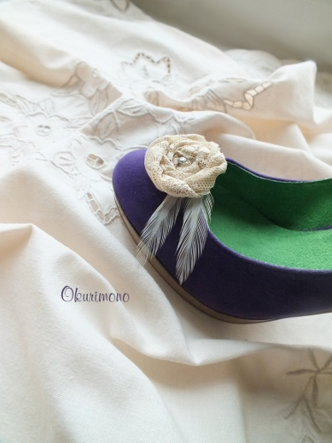 Украшение для обуви, с кружевом и перьями.