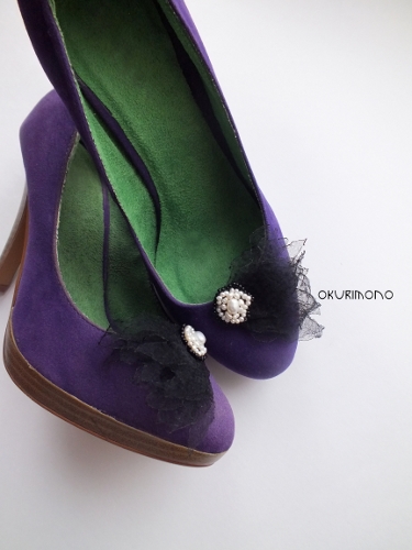 Украшение крепится при помощи специальной клипсы, не повреждающей обувь, держится крепко и легко снимается. Теперь Ваши туфельки заиграют по-новому. Вы можете придать совершенно обычной обуви по-настоящему праздничный вид.