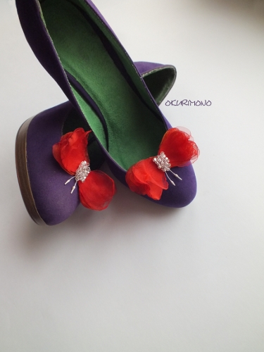 Украшение крепится при помощи специальной клипсы, не повреждающей обувь, держится крепко и легко снимается. Теперь Ваши туфельки заиграют по-новому. Вы можете придать совершенно обычной обуви по-настоящему праздничный вид.