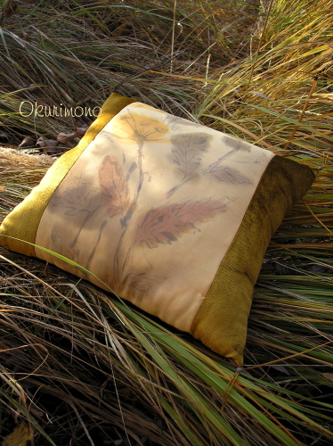 Интерьерная бархатная подушка-думка, в тёплых осенних цветах. Лицевая вставка - шифон с ручной росписью (батик). Небольшая, уютная и очень приятная на ощупь.