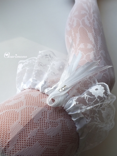 Белоснежная свадебная подвязка.