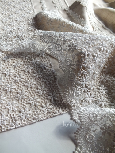 Используемые материалы: смесовая ткань со льном, кружево, декоративная тесьма.