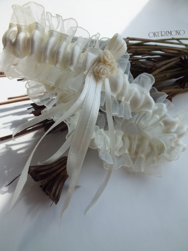 Нежный комплект свадебных подвязок для невесты, в сливочных тонах.