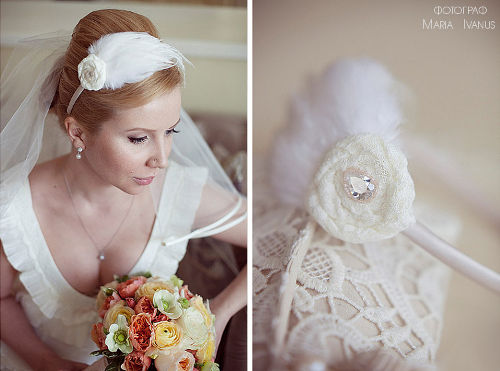 Нежное украшение для причёски невесты, из перьев.