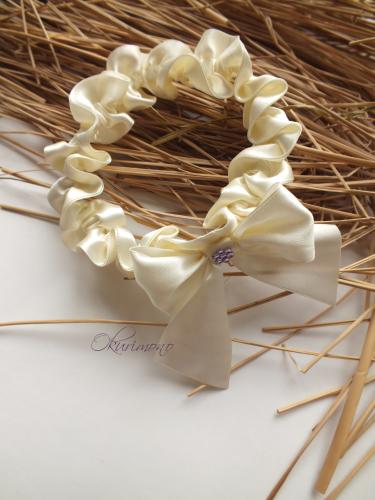 Используемые материалы: атласная лента, стразы.