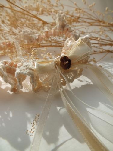 Используемые материалы: ленты атласные, хлопковое кружево, хлопковая лента, ленты из органзы, перламутр, жемчуг натуральный(речной).