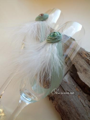 Свадебные бокалы из высококачественного выдувного стекла, украшенные перьями.