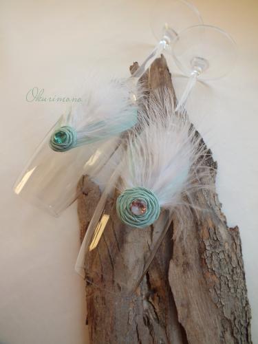 Свадебные бокалы из высококачественного выдувного стекла, украшенные перьями.