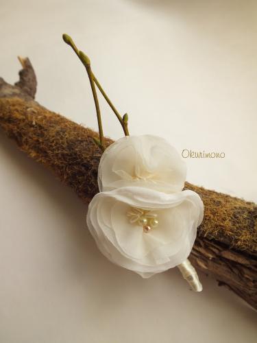 Бутоньерка в виде фантазийных цветов.