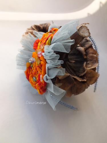 Ободок для волос с жизнерадостными рыжими цветами.