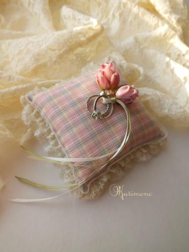 Очаровательная хлопковая подушечка для обручальных колец, с розочками.