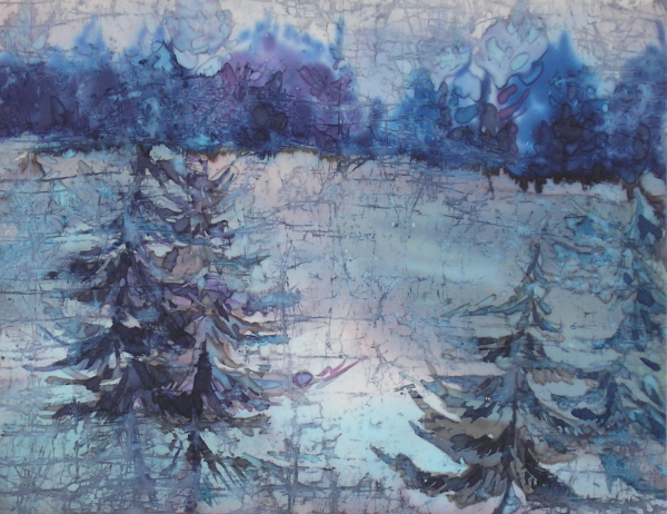 "Зимний лес". Шифон, анилин. 48x38