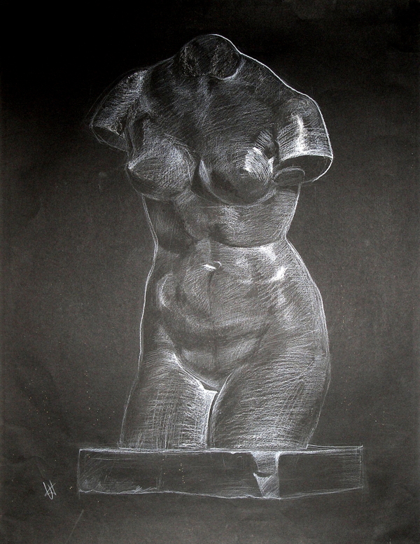 Чёрная бумага, белый карандаш. 50x65