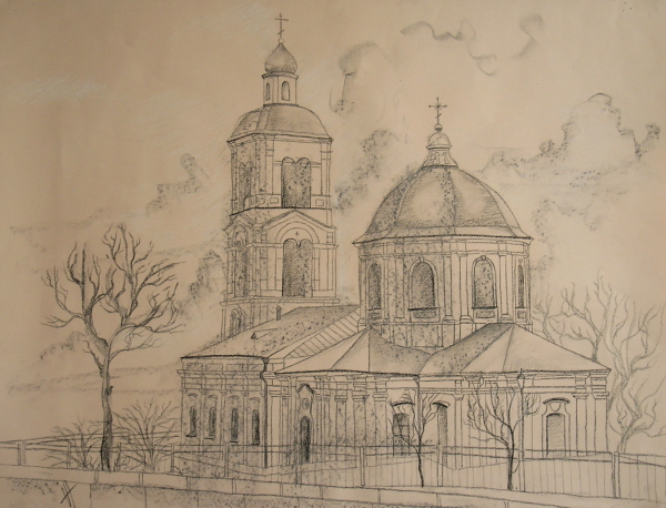 "Церковь". Тонированая бумага, уголь. 65x50