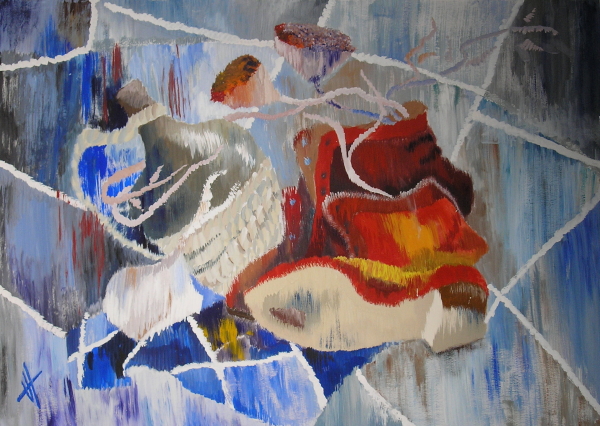 Натюрморт с красными сапогами. Бумага, темпера. 85x61