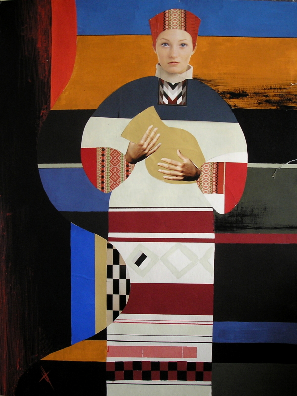 "Русские мотивы". Коллаж, темпера. 77x102