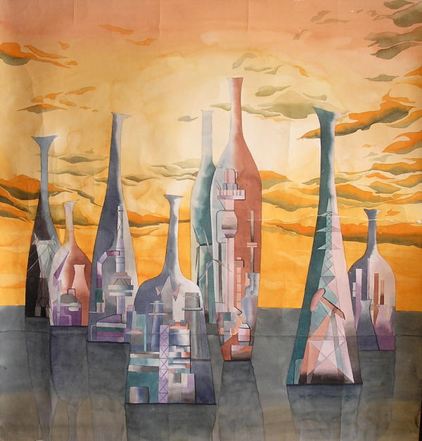 "Урбания". Бумага, анилин. 79.5x83.5